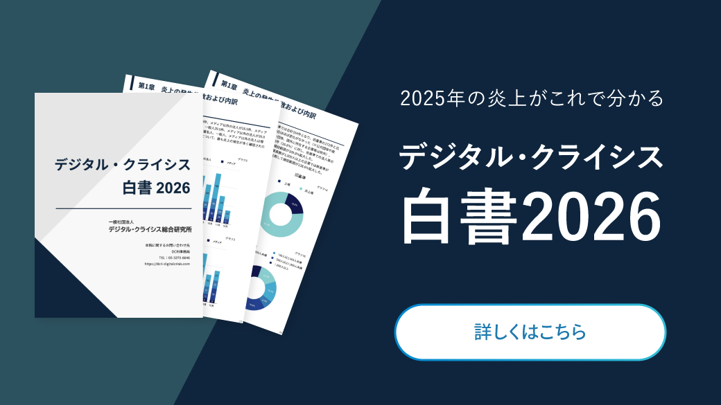 開催日時:2026.03.11 「直感の突破力」と「論理的挑戦」~デジタルクライシスに負けない『攻めるガバナンス』の正体~ セミナー開催のお知らせ 開催日時:2026.02.26 『事例から紐解く「表現のアップデート」講座 ~ジェンダー炎上を防ぐためのクリエイティブ・チェックリスト~』 セミナー開催のお知らせ 2026.01.29 【調査レポート】「AIのせい」は通用しない。消費者の7割が「企業の責任」と回答。全面禁止下でも発生する「シャドーAI」など、2026年最新リスク実態を公開 開催日時:2026.02.12 顧客の不満を6割解消した「攻めのCS」 ~上場企業経営者が最優先で取り組んだ口コミ戦略の全容~ 2026.01.22 【調査レポート】「炎上」を見る層と見ない層は真っ二つ。SNSアルゴリズムが企業から隠す「見えない火種」のリスク実態を公開 ~「何も悪いことをしていなくても炎上する」時代に、企業が守るべき“24時間のタイムリミット”とは~ 開催日時:2026.03.11 「直感の突破力」と「論理的挑戦」~デジタルクライシスに負けない『攻めるガバナンス』の正体~ セミナー開催のお知らせ 開催日時:2026.02.26 『事例から紐解く「表現のアップデート」講座 ~ジェンダー炎上を防ぐためのクリエイティブ・チェックリスト~』 セミナー開催のお知らせ 開催日時:2026.02.12 顧客の不満を6割解消した「攻めのCS」 ~上場企業経営者が最優先で取り組んだ口コミ戦略の全容~ 開催日時:2026.02.04 第143回デジタル・クライシス白書2026発行記念『下半期2.5倍に急増の原因。「選挙イヤー」が生んだ社会的分断と「不寛容リスク」』開催のお知らせ 開催日時:2026.01.28 【経営者・広報・マーケター向け】第142回SNS炎上対策ランチタイムセミナーのお知らせ 2026.01.29 【調査レポート】「AIのせい」は通用しない。消費者の7割が「企業の責任」と回答。全面禁止下でも発生する「シャドーAI」など、2026年最新リスク実態を公開 2026.01.22 【調査レポート】「炎上」を見る層と見ない層は真っ二つ。SNSアルゴリズムが企業から隠す「見えない火種」のリスク実態を公開 ~「何も悪いことをしていなくても炎上する」時代に、企業が守るべき“24時間のタイムリミット”とは~ 2025.11.05 SNSリスク管理士検定、累計受験者数が4,000名を突破! 2025.09.12 シエンプレを騙る不審な連絡にご注意ください 2025.09.01 企業炎上に関する用語集を公開 〜変化するSNSリスクに対応、企業の危機管理を支援〜 2025.10.30 10月30日付けの『日経クロストレンド』にて、弊社主催のセミナーの内容および弊社前薗のコメントが掲載されました。 2025.10.16 10月16日付けの『日経ビジネス』にて、弊社の調査データおよび弊社桑江のコメントが掲載されました。 2025.10.10 10月10日付けの『読売新聞オンライン』にて、「デジタル・クライシス総合研究所」が実施している「SNSリスク管理士検定」が取り上げられました。 2025.09.29 国土交通省、経済産業省、農林水産省が推進する「ホワイト物流」推進運動で、新たに自主行動宣言を提出した167社のうちの1社として掲載されました。 2025.07.31 岩田 和也氏, 清水 裕士氏によるレポートにて、「デジタル・クライシス白書2024」が引用文献として使用されました。Informationお知らせ