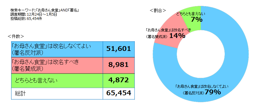 A社にとっては幸いなことに、Twitterに寄せられた全体の投稿数のうち、約8割の5万1601件は「改名しなくてよい」(署名反対派)という意見でした。