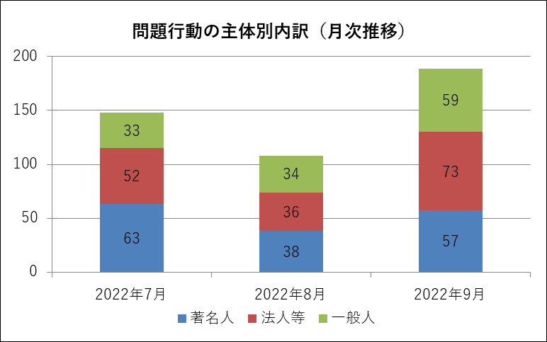 ・9月の炎上事案は189件でした。前月に比べ、81件増加しています。