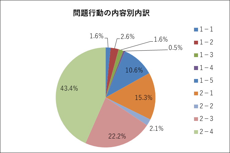 炎上の原因となった問題行動の内容としては「2-4」(その他、特定の層を不快にさせるような内容・発言・行為)に該当する炎上が最も多く、次いで「2-3」(非常識な発言・行為、デリカシーのない内容・発言・行為)に該当する炎上が多い結果となりました。