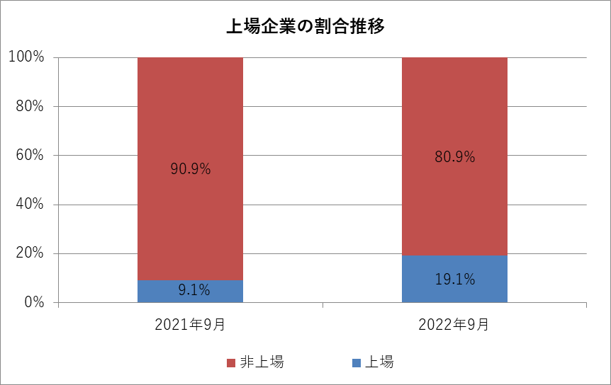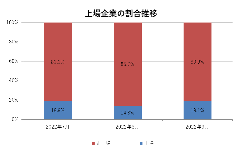 また前年同月比では、上場企業の割合が10.0ポイント増加しています。