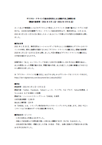 (調査対象期間:2021年3月1日~2021年3月31日)