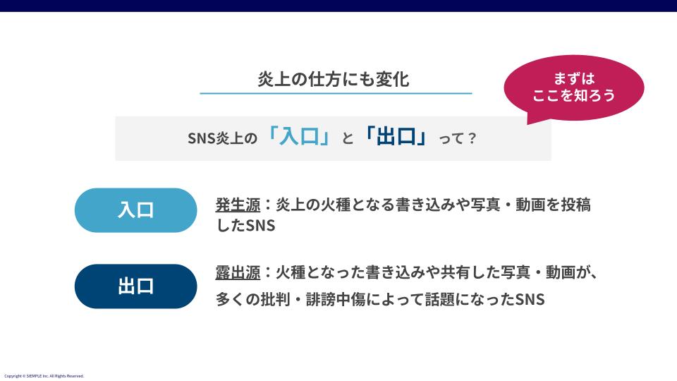 入口は炎上の発生源で、火種となる書き込みや写真・動画を投稿した場所(SNS)を指します。