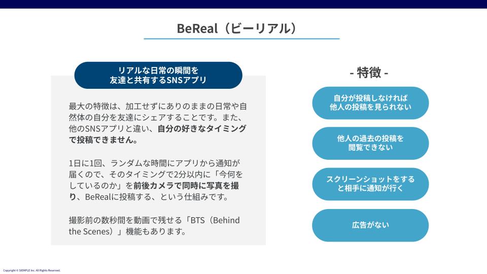 BeRealは「リアルな友達とだけつながる」というコンセプトが強く、ユーザーは「内輪のノリ」で投稿しがちです。