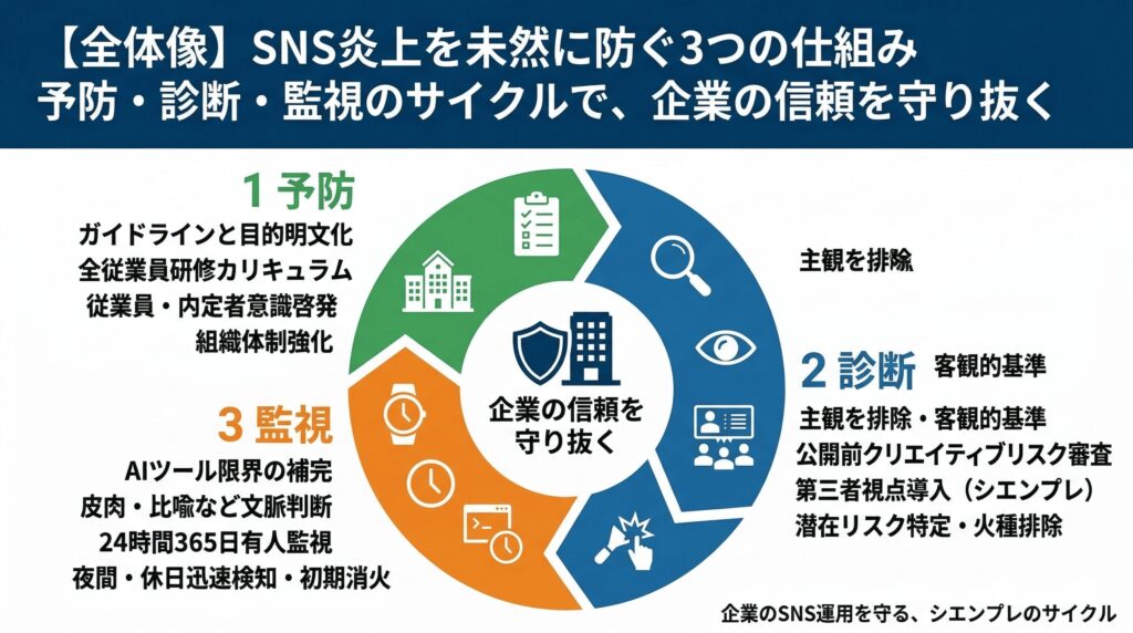 まとめ:SNS炎上は運ではない。仕組みで確実に防ぐ