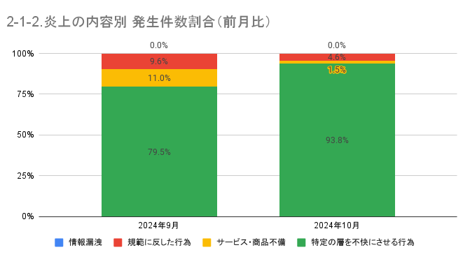 2-1. 炎上の内容別 発生件数と割合(前月比)