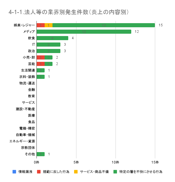 また、炎上の主体が「法人等」の場合、20の業界に分類しました。