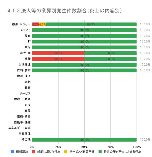 4-1. 法人等の業界別発生件数と割合(炎上の内容別)