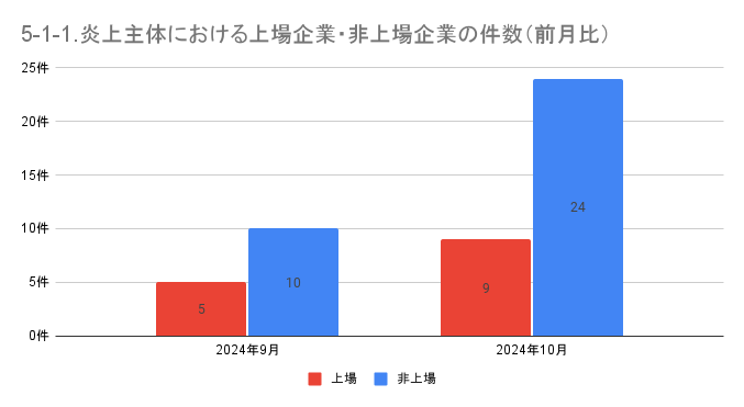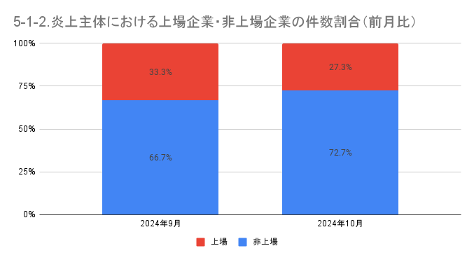 5-1. 炎上主体における上場企業・非上場企業の件数と割合(前月比)