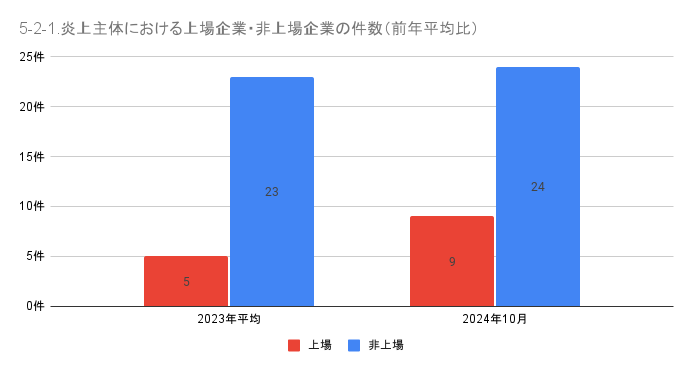 5-2. 炎上主体における上場企業・非上場企業の件数と割合(前年平均比)
