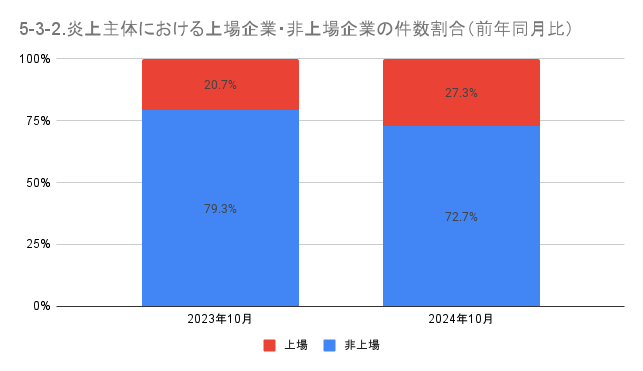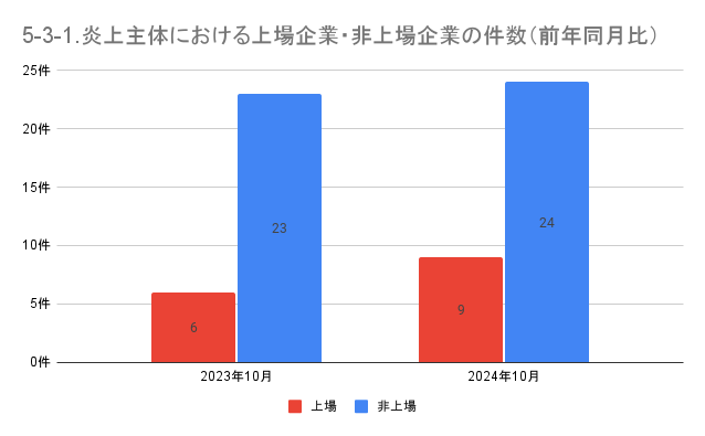 5-3. 炎上主体における上場企業・非上場企業の件数と割合(前年同月比)