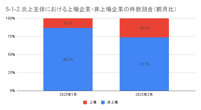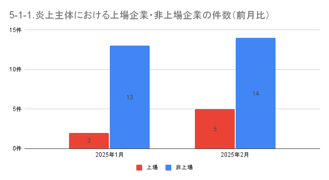 5-1. 炎上主体における上場企業・非上場企業の件数と割合(前月比)