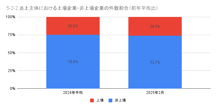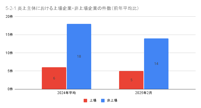 5-2. 炎上主体における上場企業・非上場企業の件数と割合(前年平均比)