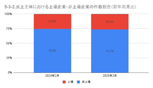 5-3. 炎上主体における上場企業・非上場企業の件数と割合(前年同月比)