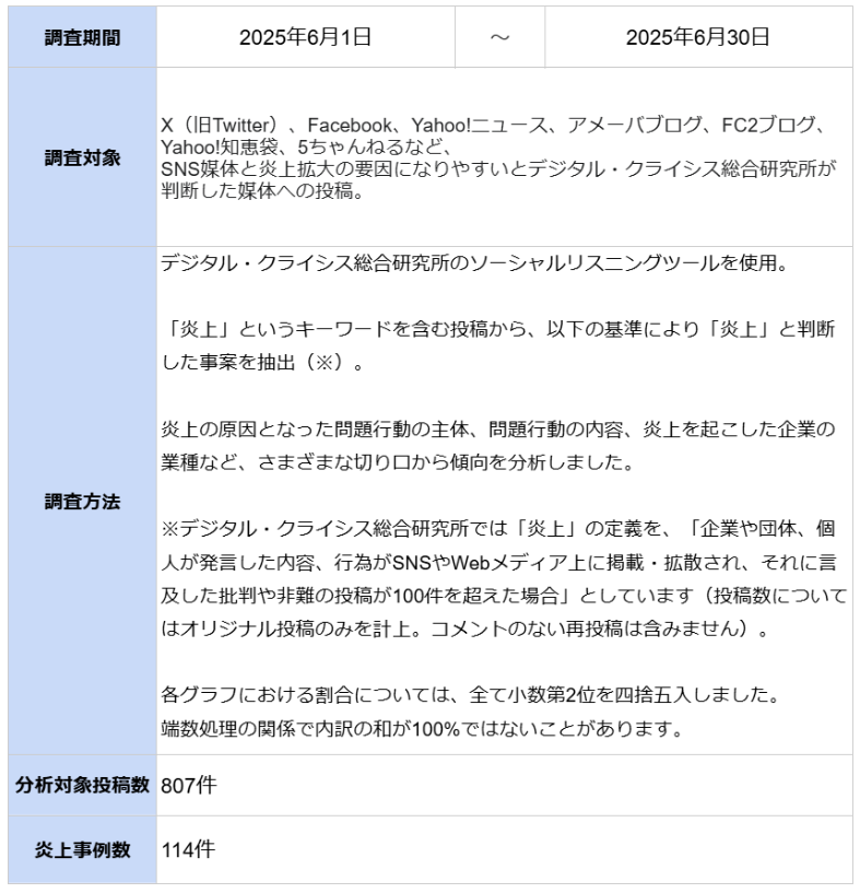 炎上事案分析データ2025年6月版(調査対象期間:2025年6月1日~2025年6月30日)