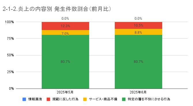 2-1. 炎上の内容別 発生件数と割合(前月比)