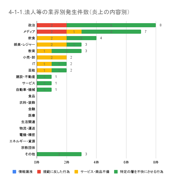 また、炎上の主体が「法人等」の場合、20の業界に分類しました。