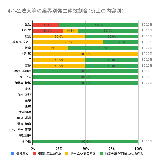 4-1. 法人等の業界別発生件数と割合(炎上の内容別)