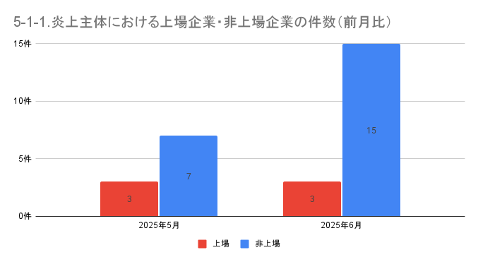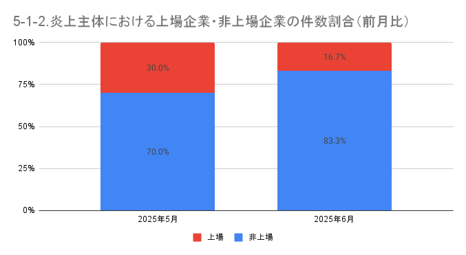 5-1. 炎上主体における上場企業・非上場企業の件数と割合(前月比)