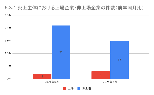 5-3. 炎上主体における上場企業・非上場企業の件数と割合(前年同月比)