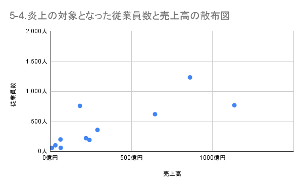 5-4. 炎上の対象となった従業員数と売上高の散布図