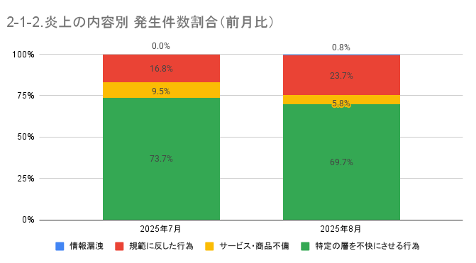 2-1. 炎上の内容別 発生件数と割合(前月比)