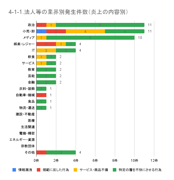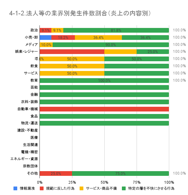 4-1. 法人等の業界別発生件数と割合(炎上の内容別)