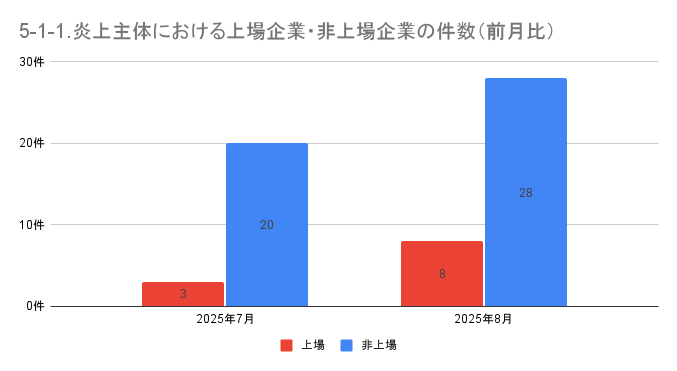 5-1. 炎上主体における上場企業・非上場企業の件数と割合(前月比)