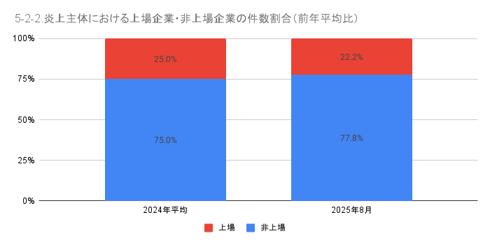 5-2. 炎上主体における上場企業・非上場企業の件数と割合(前年平均比)
