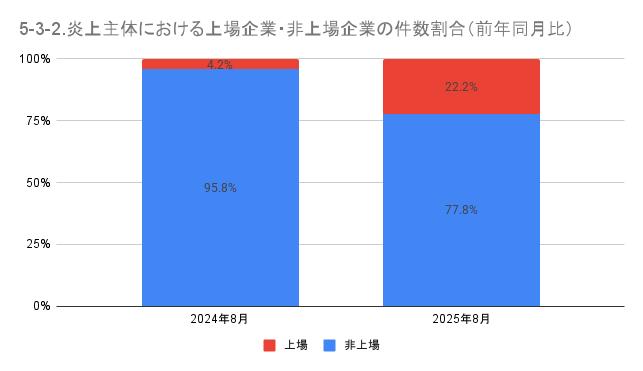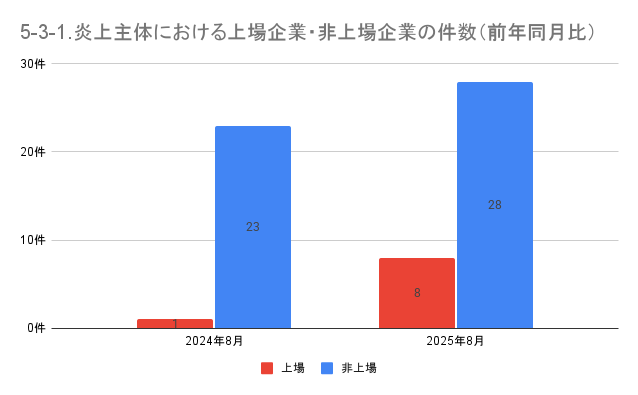 5-3. 炎上主体における上場企業・非上場企業の件数と割合(前年同月比)