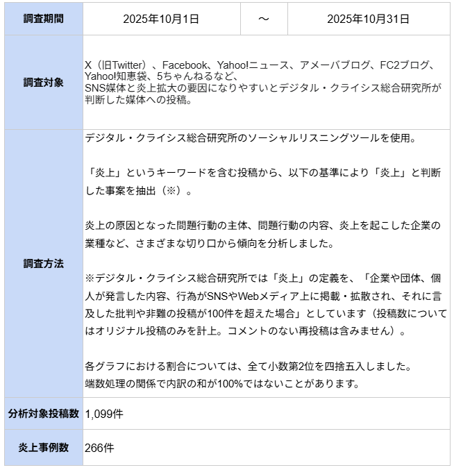 炎上事案分析データ2025年10月版(調査対象期間:2025年10月1日~2025年10月31日)