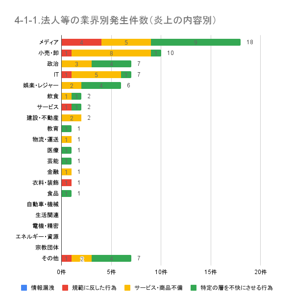 また、炎上の主体が「法人等」の場合、20の業界に分類しました。