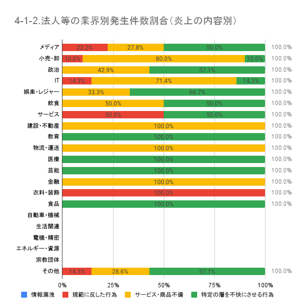 4-1. 法人等の業界別発生件数と割合(炎上の内容別)