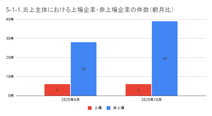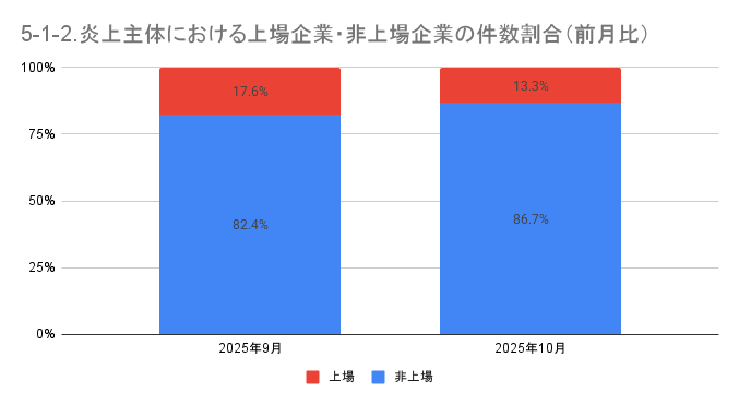 5-1. 炎上主体における上場企業・非上場企業の件数と割合(前月比)