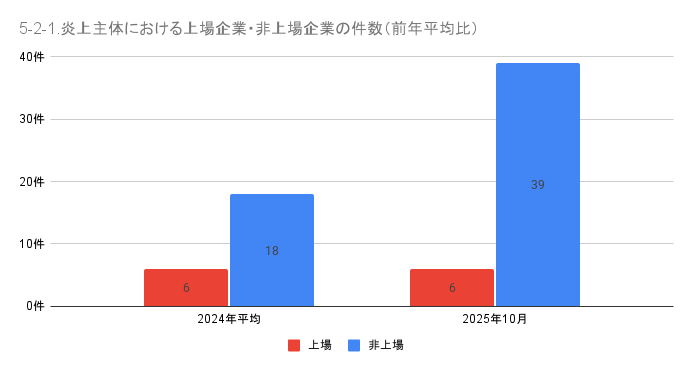 5-2. 炎上主体における上場企業・非上場企業の件数と割合(前年平均比)