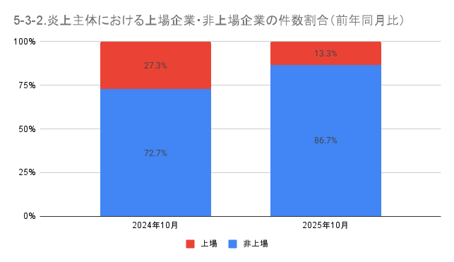 5-3. 炎上主体における上場企業・非上場企業の件数と割合(前年同月比)