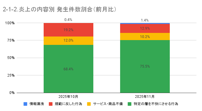 2-1. 炎上の内容別 発生件数と割合(前月比)