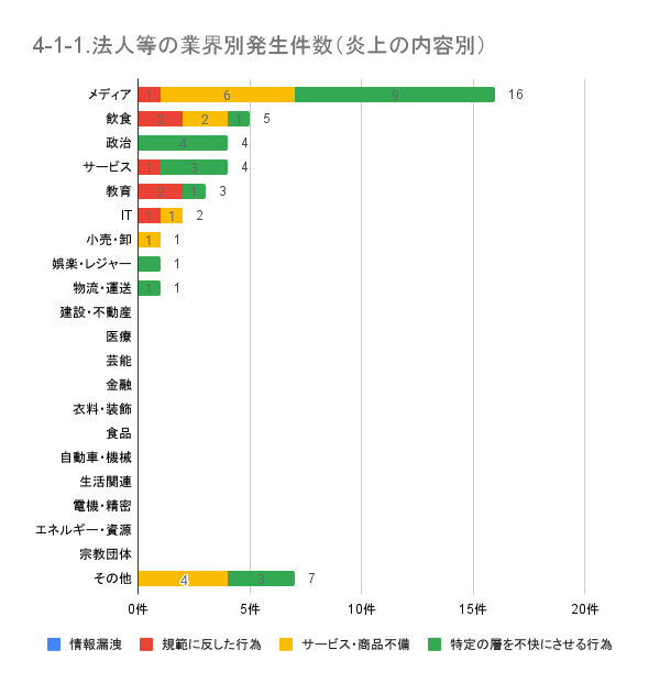 また、炎上の主体が「法人等」の場合、20の業界に分類しました。