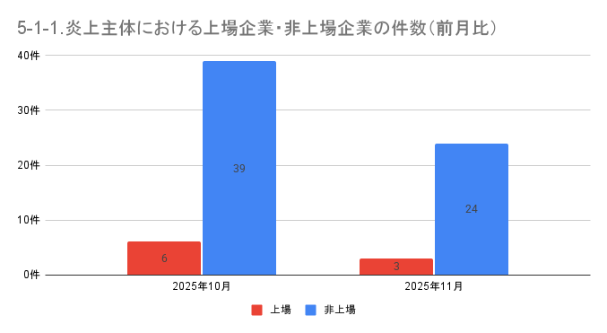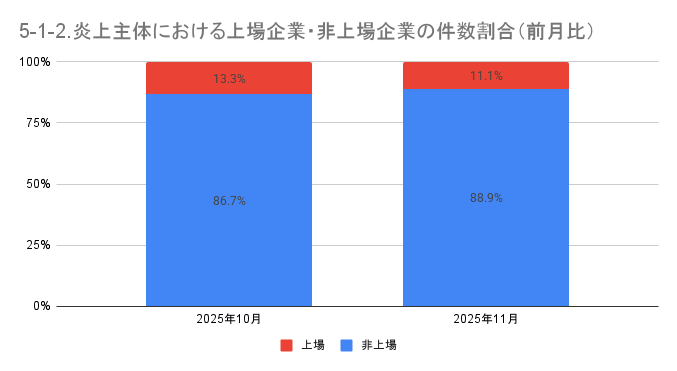 5-1. 炎上主体における上場企業・非上場企業の件数と割合(前月比)