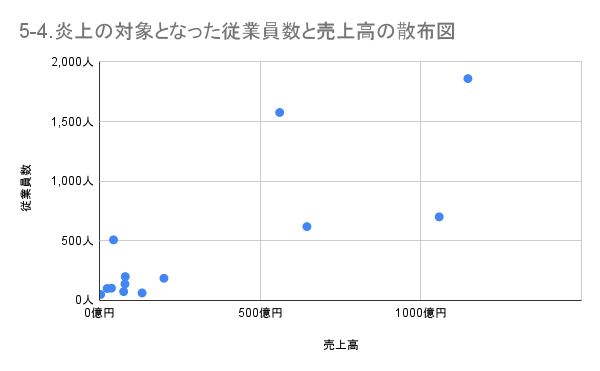 5-4. 炎上の対象となった従業員数と売上高の散布図
