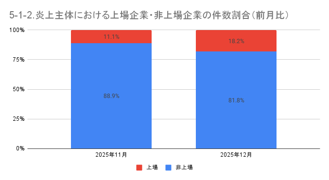 5-1. 炎上主体における上場企業・非上場企業の件数と割合(前月比)