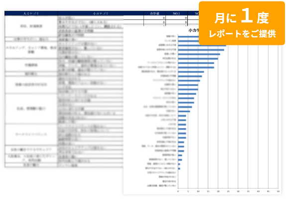 定期的に各種口コミサイトをモニタリングし、月に1度レポートをご提供いたします。問題のある口コミに対しては回答を作成し、都度投稿します。