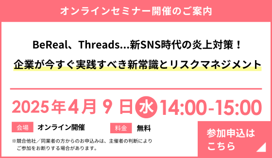 2025年の炎上トレンドを総括!「『なぜ、その事案は燃えたのか?』事例から学ぶ、生成AI・Threads・BeReal…etc時代のリスクとの向き合い方の常識」 セミナー開催のお知らせ